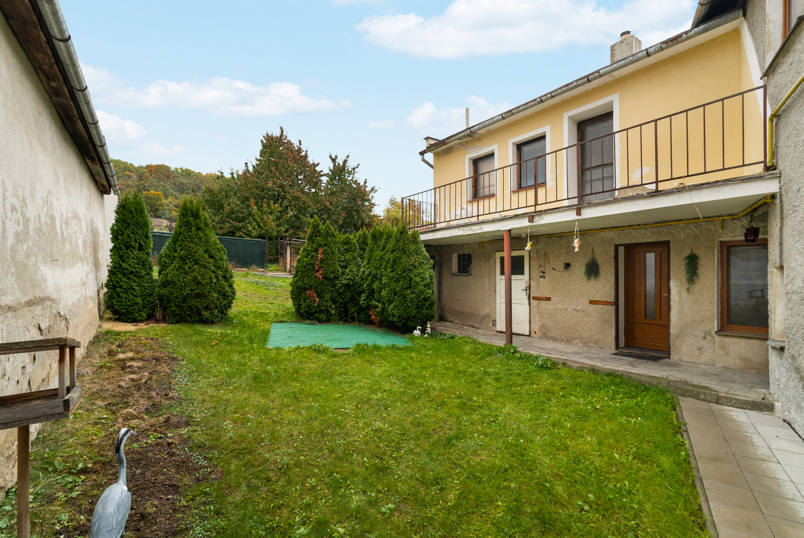 Z kuchyně v přízemí je přímý vstup na zahradu, která poskytuje klidné zázemí pro odpočinek, posezení s rodinou či zahradničení. K dispozici je také garáž.